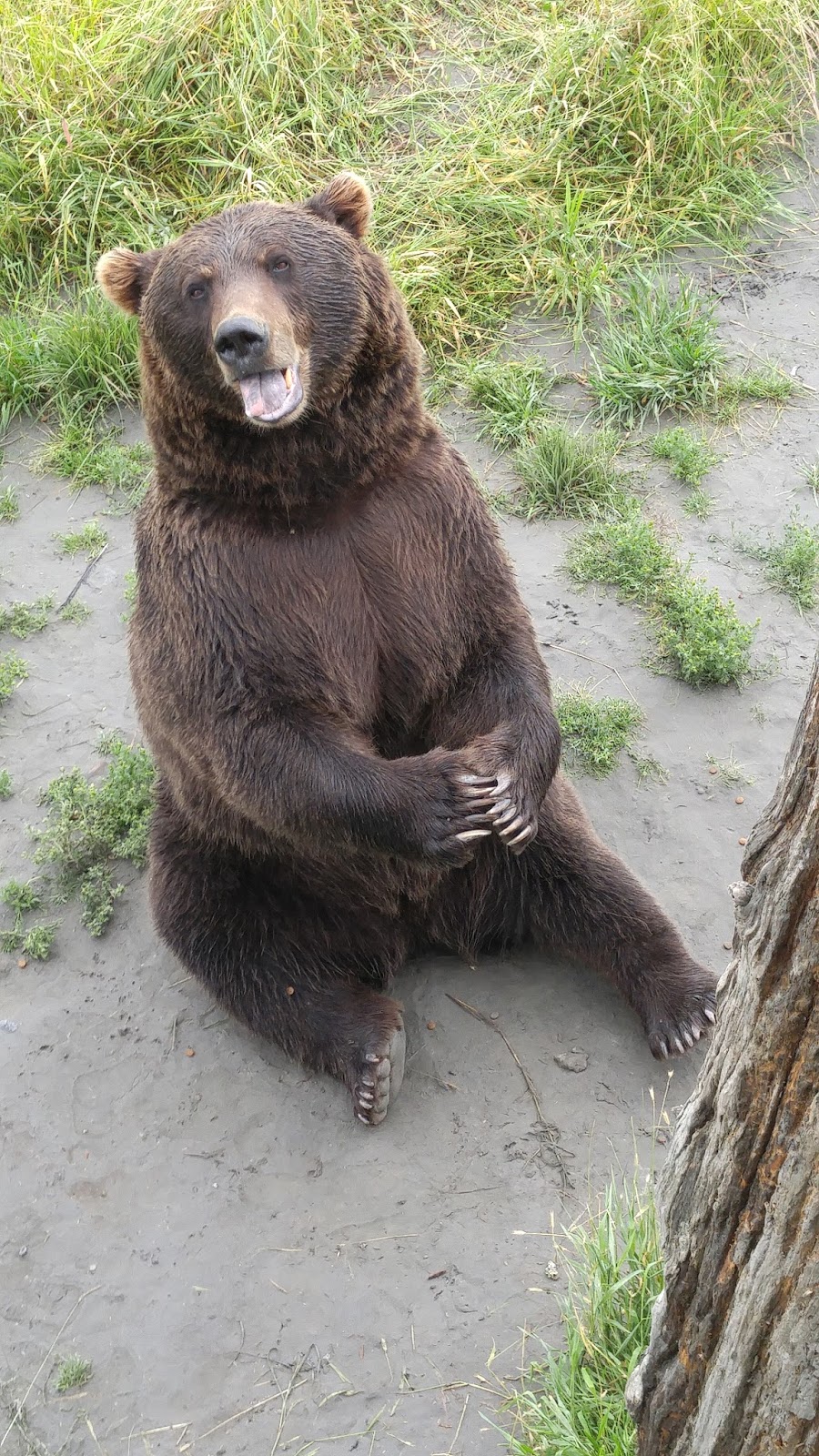 The Chena Hot Springs Resort has an indoor ice sculpture museum. It's 25 degrees in there, so we had to break out our coats for the first time in...I can't remember when. This is a polar bear lying on his back with balls of ice on his feet.